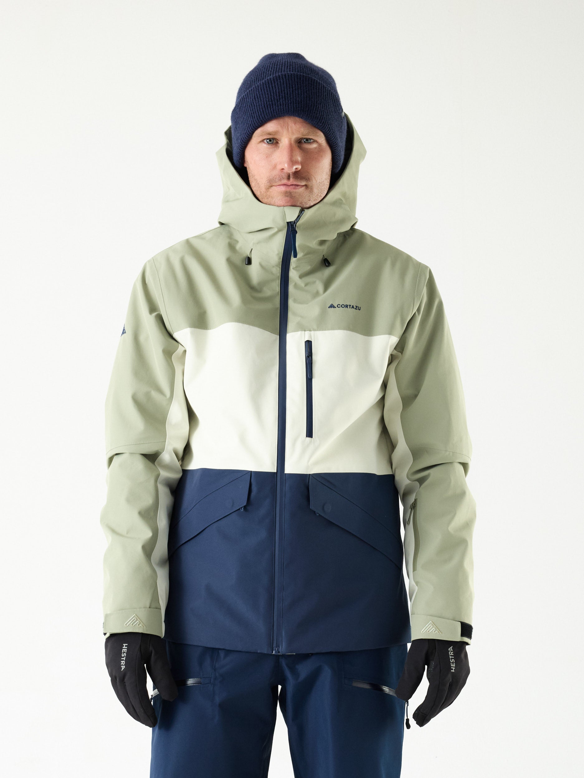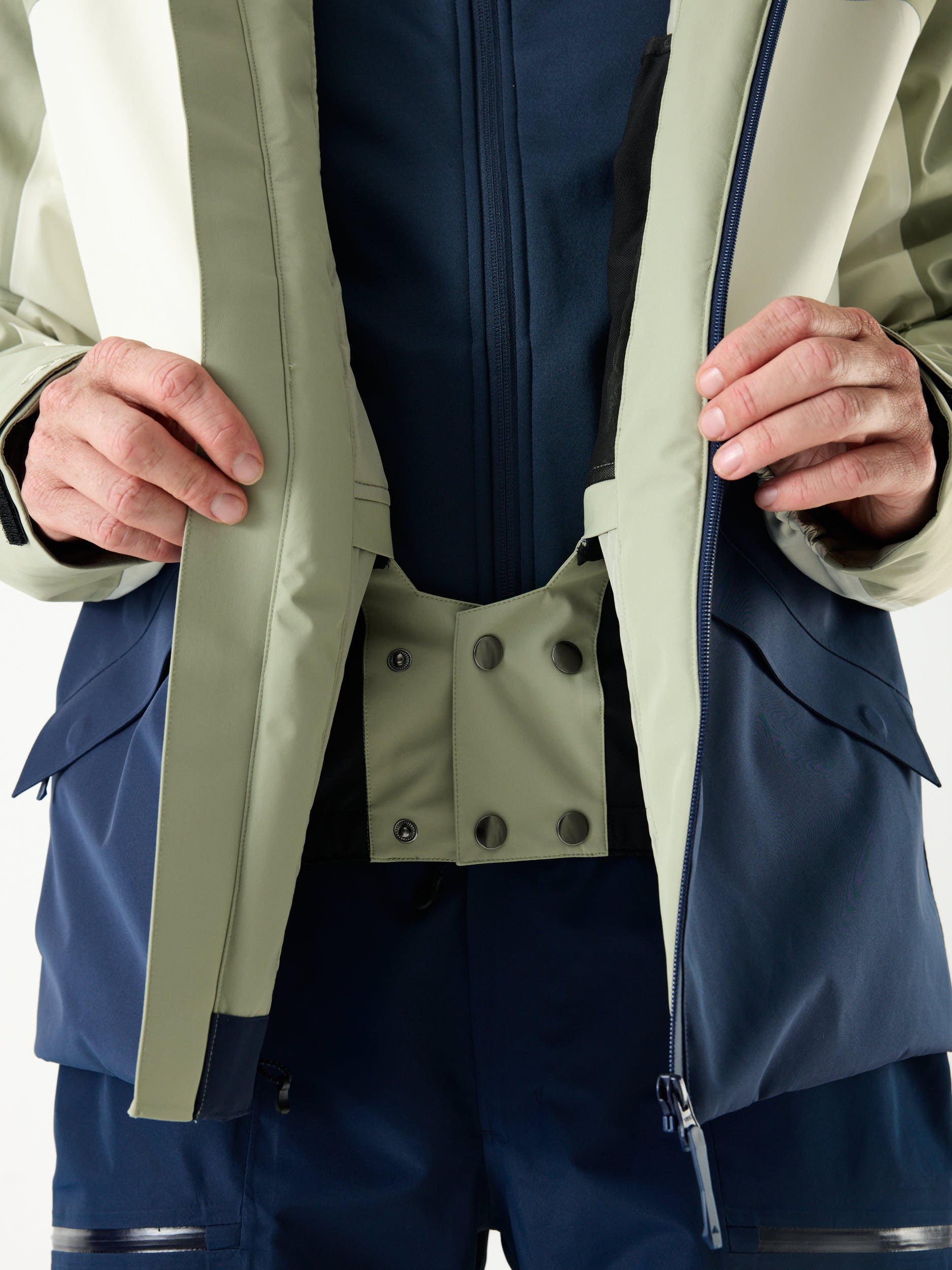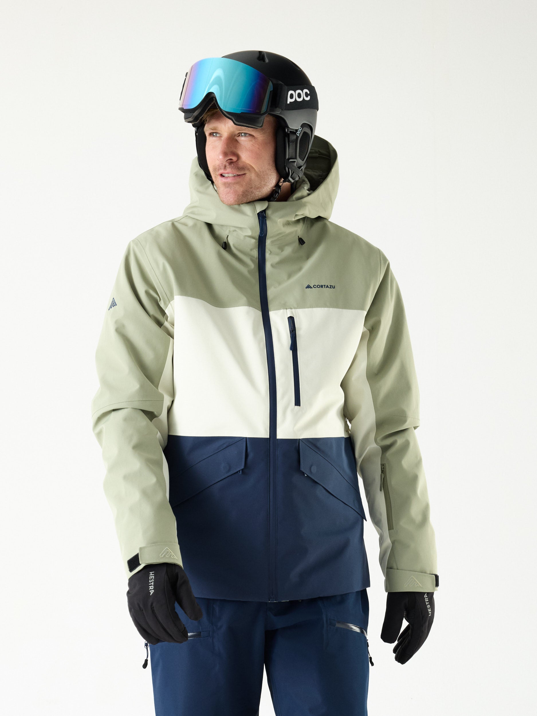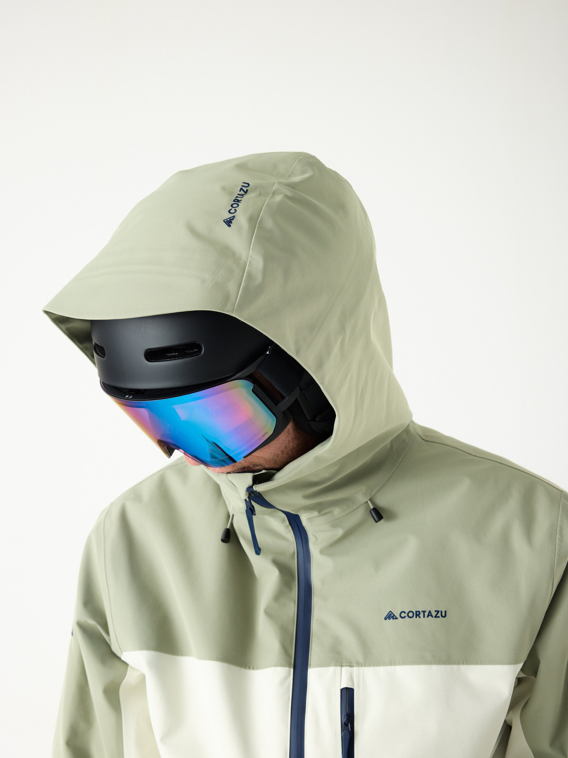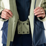 • Tailored for skiing with a removable snow skirt, helmet-compatible hood, armpit vents, RECCO® system, and multiple smart pockets—including an RFID sleeve and internal mesh.