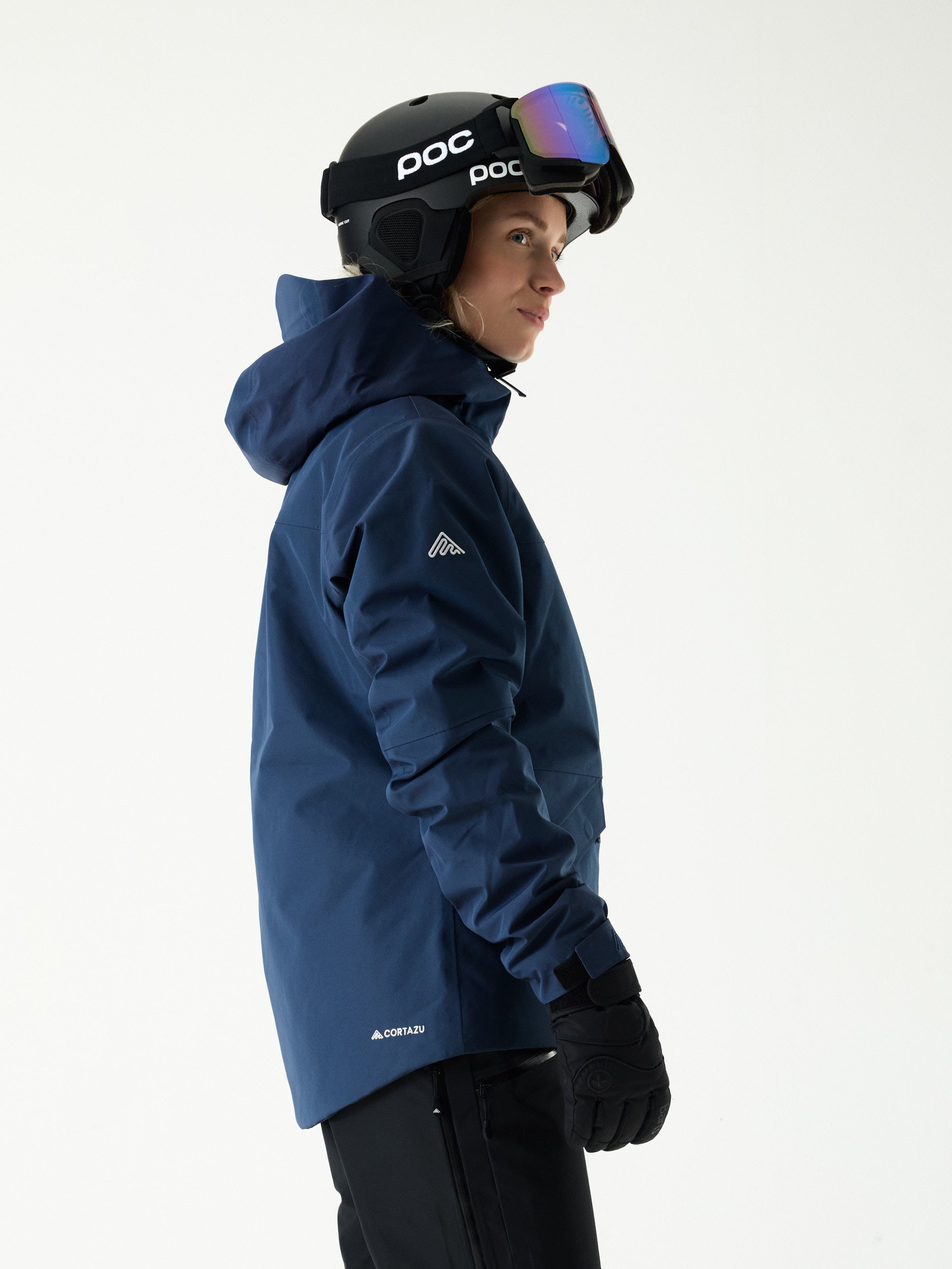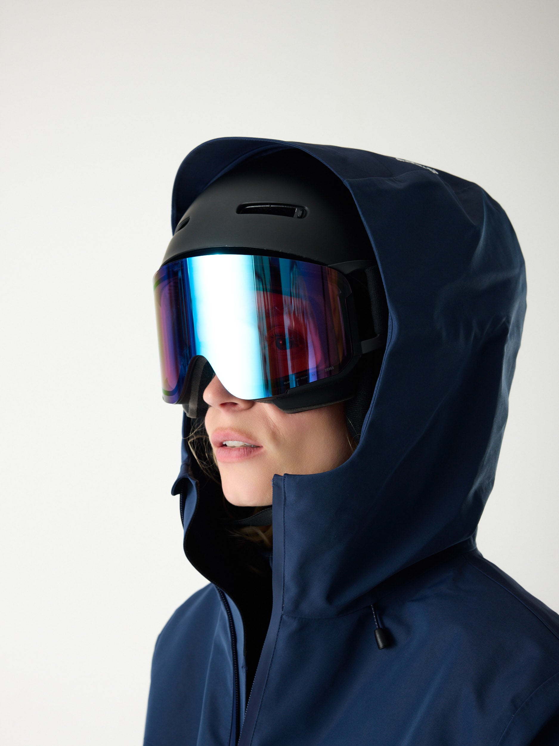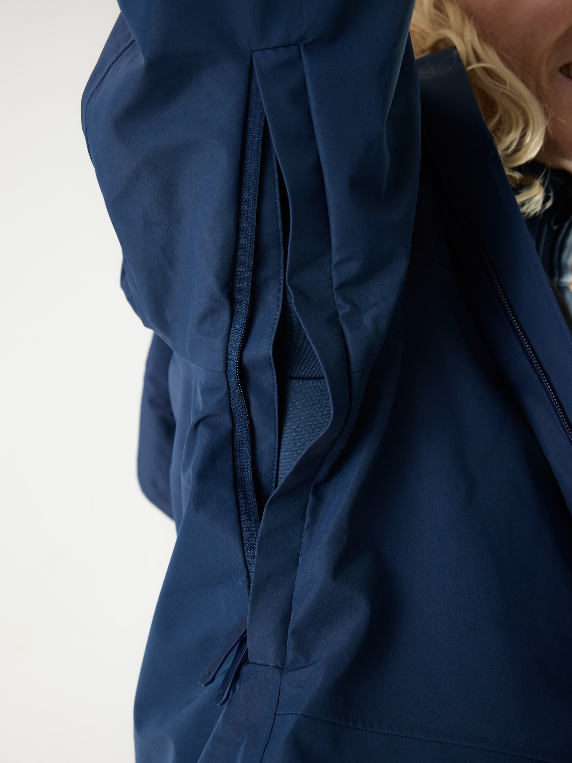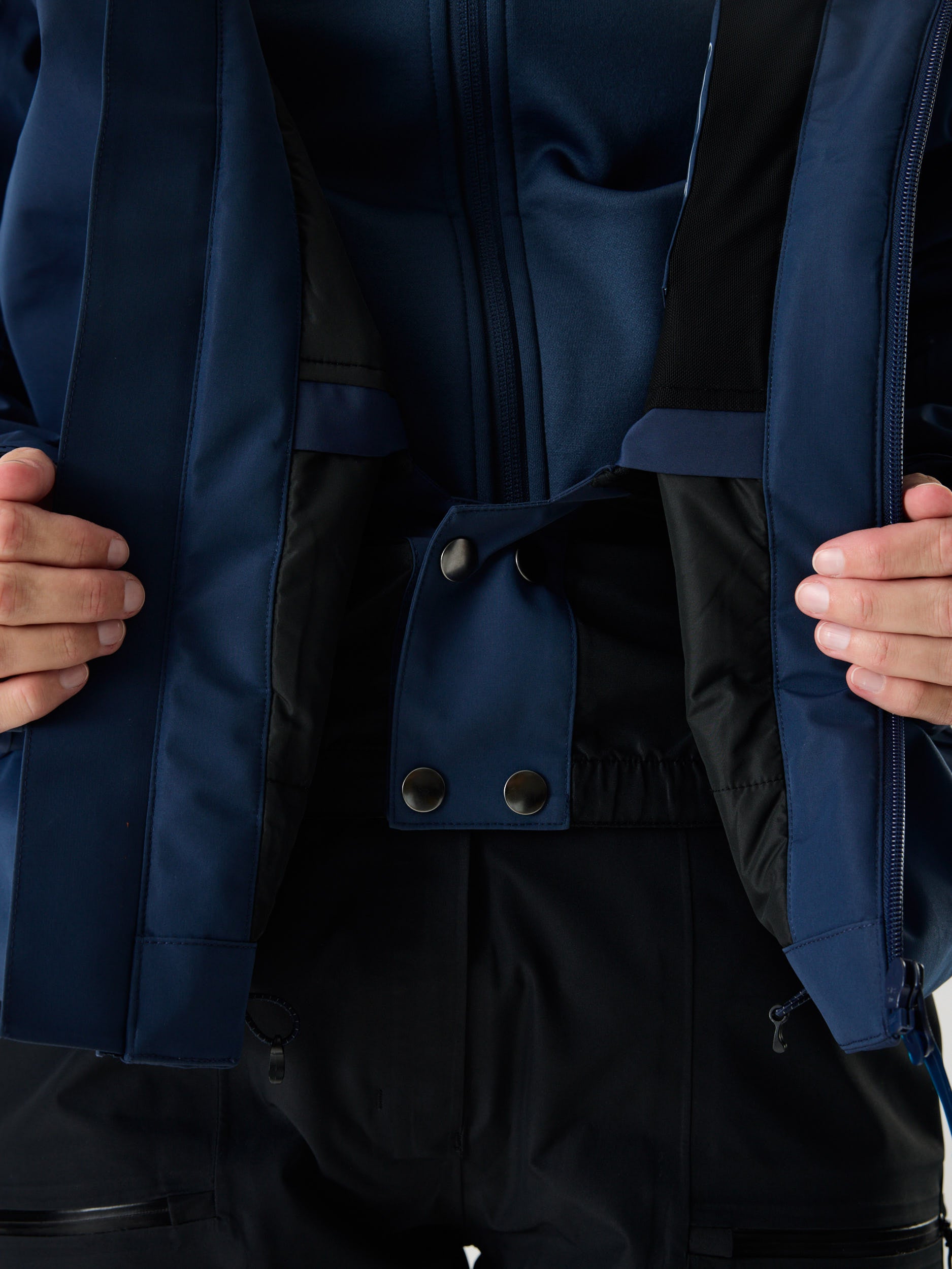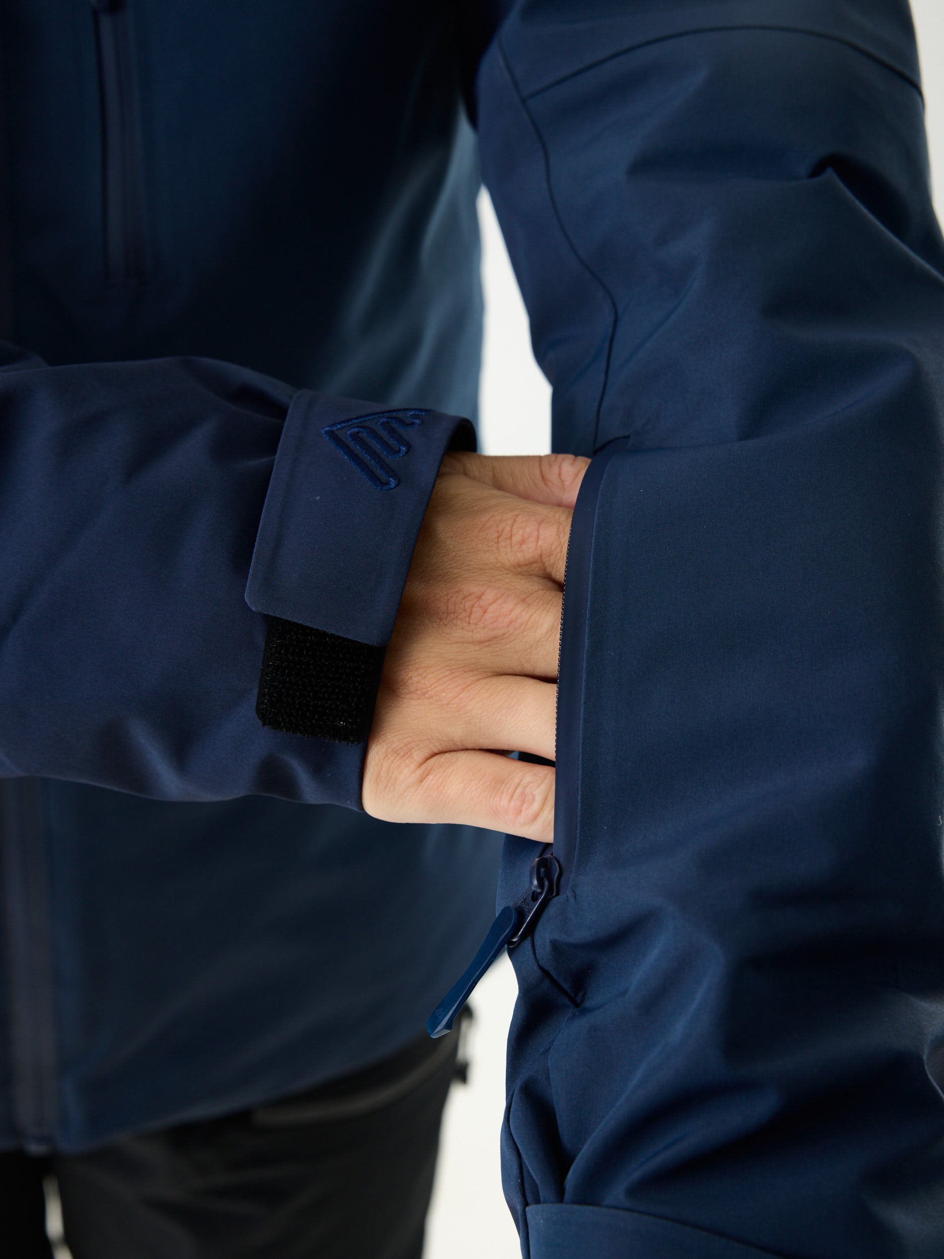 • Uitgerust met vergelijkbare functies, zoals een helmcompatibele capuchon, okselritsen, RECCO®- en SBS-waterdichte ritsen.